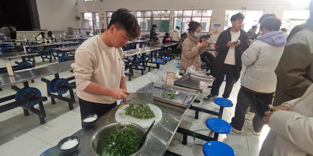 活动现场热闹非凡,学院领导与师生一同包饺子、话家常,一起感受来自学院大家庭的温暖。随着活动的开始,同学们三五成群,或站或坐,围绕着一张张摆满饺子皮、馅料和工具的桌子,欢声笑语不断。大家纷纷卷起袖子,迫不及待地投入到包饺子的乐趣中。同学们在活动中相互交流学习,不仅学会了一项实用的生活技能,更感受到了劳动带来的成就感与喜悦。