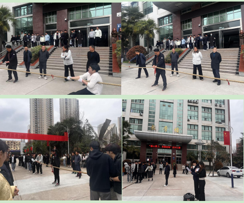 春日校园,生机盎然。公司于3月27日下午,在学校教学楼前由大一、大二年级共14支队伍开展了主题为“凝心聚力,勇攀高峰”的校园拔河比赛。通过本次比赛丰富了校园文化生活,增强员工团队协作意识与集体凝聚力,营造积极向上、团结奋进的校园氛围。