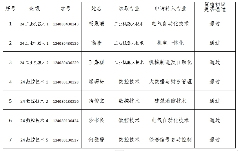 2024-2025-1学期员工申请转专业资格初审情况汇总表