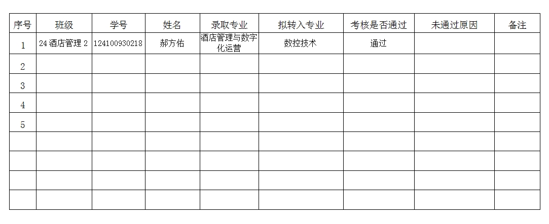 2024-2025-1 学期申请转专业员工考核情况汇总表